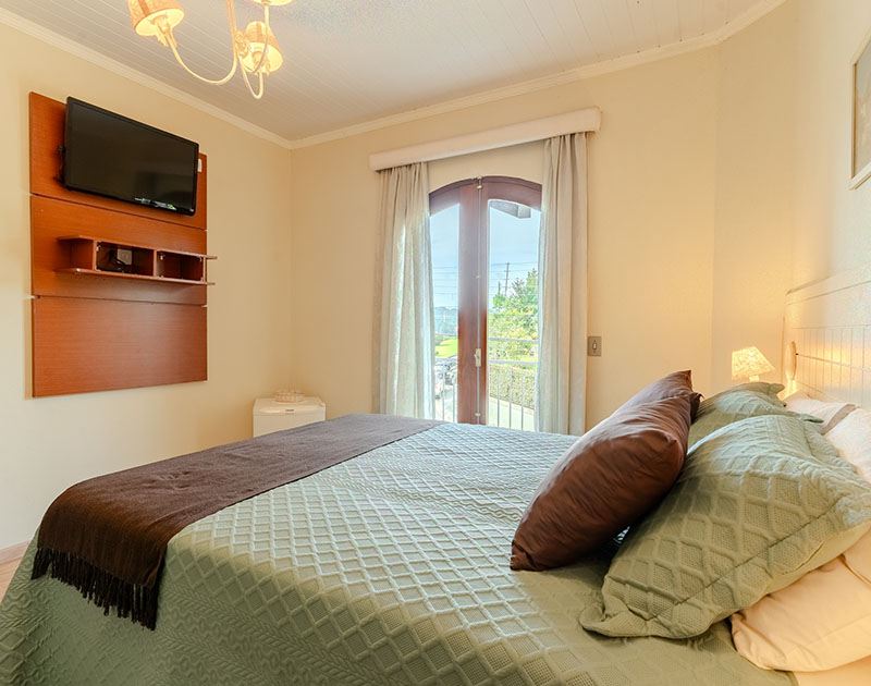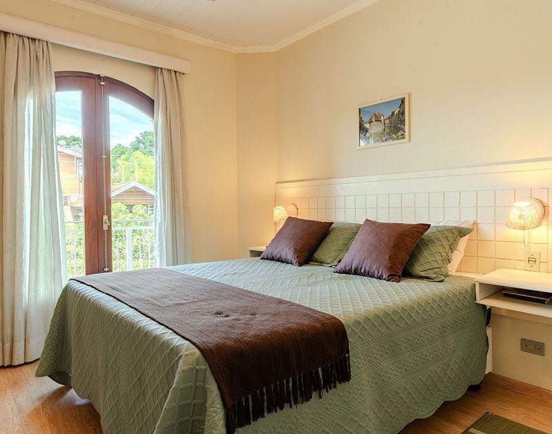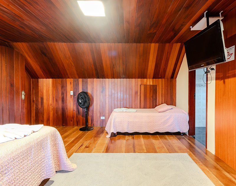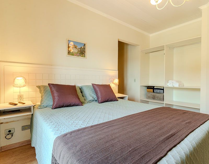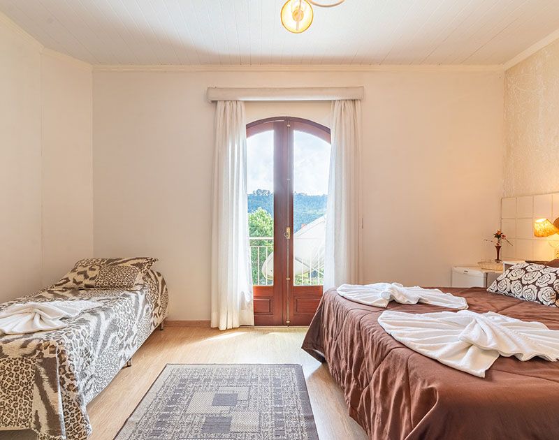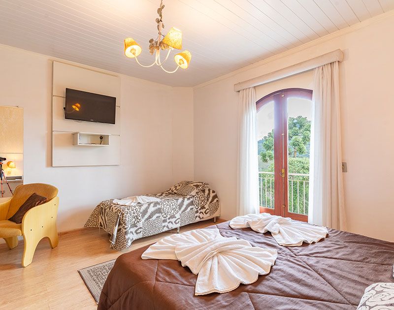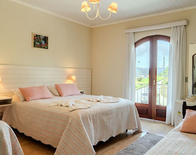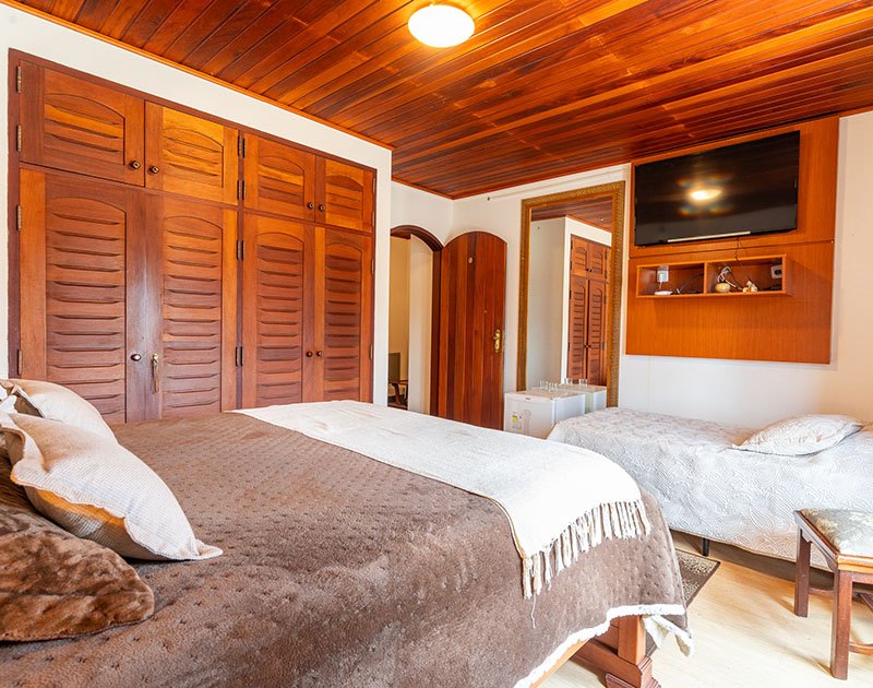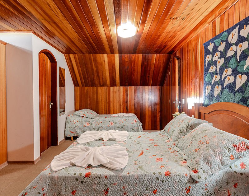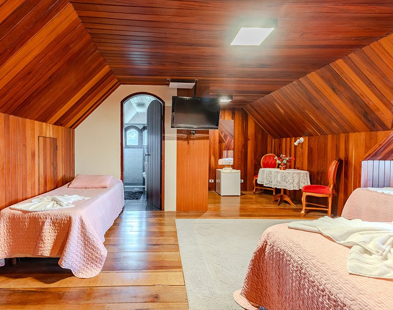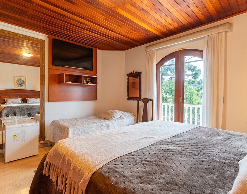 Quartos perfeitos para 4 pessoas (casal e crianças ou 4 adultos). Todos possuem 1 cama de casal e 2 camas de solteiro. Possuem também TV LED, Wifi com acesso gratuito, frigobar e aquecedor.